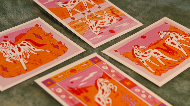 Illustration réalisée sur procreate d'un cheval qui cabre avec un petit cadre.